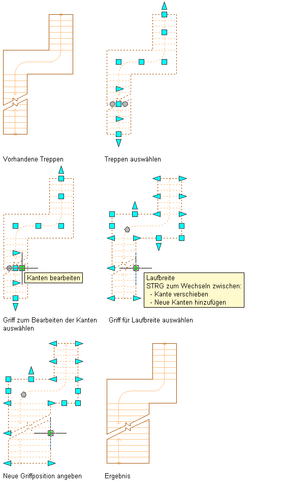 Ändern der Laufbreite einer Treppe mithilfe von Griffen