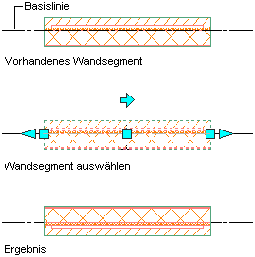 Die Außenflächen der Wand verbleiben an ihrer Position, und die Basislinie wird gegebenenfalls verschoben.