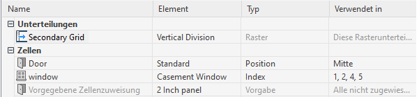 Zuweisen von Füllungen zu Zellen in Tür-Fenster-Kombinationen