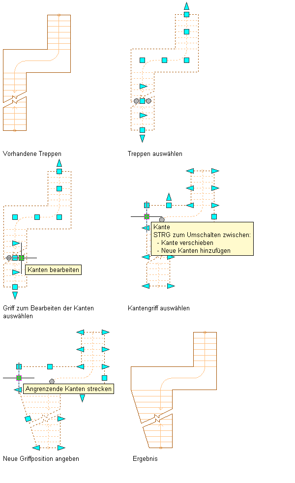 Ändern der Podestbreite einer Treppe mithilfe von Griffen