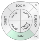 SteeringWheels sind Menüs, die in verschiedene Abschnitte, so genannte Segmente, unterteilt sind. Jedes Segment stellt ein Navigationswerkzeug dar.