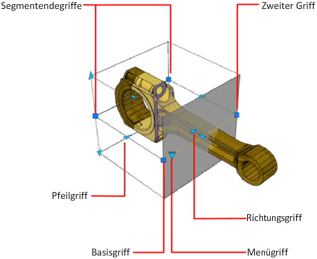 - Zweiter Griff. Mit diesem Griff wird das Schnittobjekt um den Basisgriff gedreht.