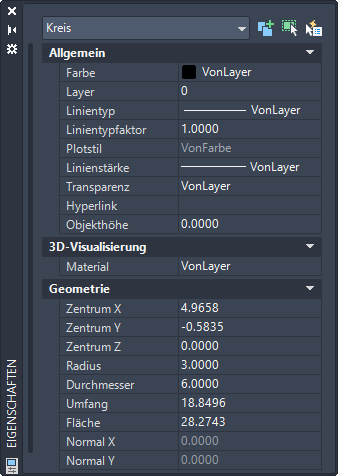Wenn Sie die Eigenschaften von AutoCAD-Objekten in AutoCAD LT anzeigen, sind einige Eigenschaften möglicherweise nicht verfügbar.