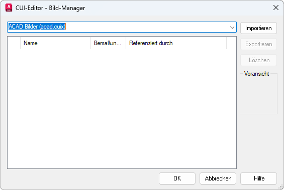 Bei Importen handelt es sich um extern gespeicherte Bilder in der ausgewählten Anpassungsdatei aus der Liste der geladenen Anpassungsdateien.