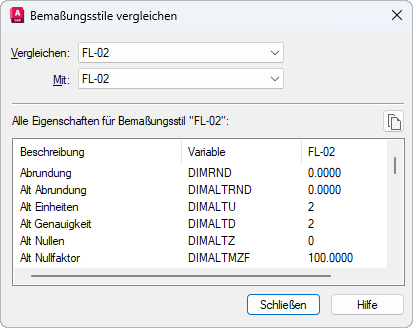BEMSTIL (Befehl) Finden: Bemessungsstil auswählen > Vergleichen