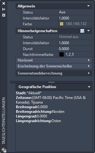 Zeigt die Koordinaten der Richtung der Sonne an. Diese Einstellung ist schreibgeschützt.