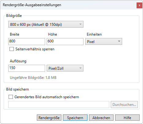 Legt die Ausgabegröße und die Auflösung des gerenderten Bilds fest.