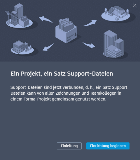 Wichtig: Verbundene Support-Dateien können nur von Mitgliedern eines Autodesk-Projekts mit der Zugriffsebene Projektadministrator in Forma Data Management eingerichtet werden.