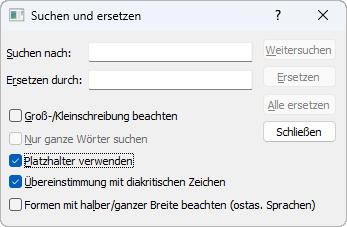 Anmerkung: Stellen Sie sicher, dass die Option Platzhalter verwenden aktiviert ist, wenn Sie Platzhalter im Feld Suchen nach angeben.