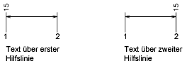 Wenn der Text innerhalb der Hilfslinien liegt, wird er an der Maßlinie ausgerichtet; liegt der Text außerhalb der Hilfslinien, wird er horizontal angeordnet.