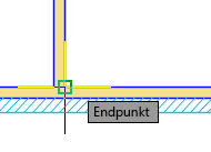 Der Cursor springt zur ausgewählten Fangposition, und eine Markierung und eine QuickInfo zeigen die Objektfangposition an.