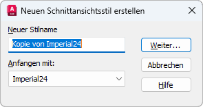 Benennt den neuen Schnittansichtsstil. Vorgabemäßig wird der neue Stil mit dem unter Anfangen mit angegebenen Namen und dem Präfix "Kopie von" benannt.