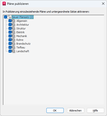 Wenn ein Plan ausgewählt ist, wird er in die Publikation einbezogen.