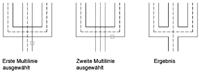 Erstellt zwischen zwei Multilinien einen Schnittpunkt mit geschlossenem T. Die erste Multilinie wird bis zu ihrem Schnittpunkt mit der zweiten Multilinie gestutzt oder verlängert.