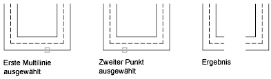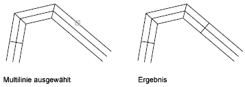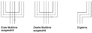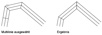 Erstellt zwischen zwei Multilinien eine Eckverbindung. Die Multilinien werden bis zu ihrem Schnittpunkt gestutzt bzw. verlängert.