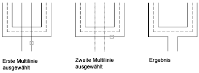 Erstellt zwischen zwei Multilinien einen Schnittpunkt mit offenem T. Die erste Multilinie wird bis zu ihrem Schnittpunkt mit der zweiten Multilinie gestutzt oder verlängert.