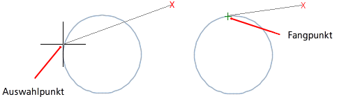 Erweiterte Schnittpunkte wie unten gezeigt sind nur als Überschreibungen während der Ausführung eines Befehls verfügbar, nicht als fortlaufender Objektfang.