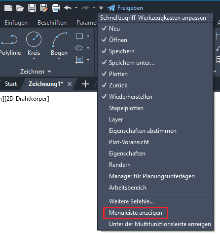 Menüleiste anzeigen