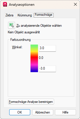 Ändert die Anzeigeeinstellungen für die Formschräge-Analyse von Volumen- und Flächenobjekten.