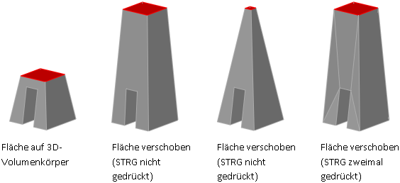 Beim Ändern eines Volumenkörpers oder einer Fläche können verschiedene Ergebnisse auftreten. Beim Verschieben, Drehen oder Skalieren von Unterobjekten können Sie einmal oder mehrfach die STRG-Taste drücken, während Sie ziehen, um durch die Änderungsoptionen zu wechseln.