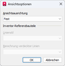 Dieses Dialogfeld gibt an, wie die Ansichtsgeometrie verankert wird und wie die Inventor-Referenzbauteile angezeigt werden.