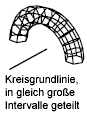 Das Netz wird durch Sweepen der Grundlinie um die gewählte Achse definiert. Die Grundlinie bestimmt die N-Richtung des Netzes. Wenn Sie einen Kreis oder eine geschlossene Polylinie als Grundlinie auswählen, wird das Netz in N-Richtung geschlossen.