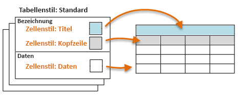 Die Darstellung einer Tabelle wird durch den Tabellenstil gesteuert, in dem eine Sammlung von Zellenstilen für Beschriftungen und Daten gespeichert sind. Diese Zellenstile werden für jede Zelle in der Tabelle zugewiesen.