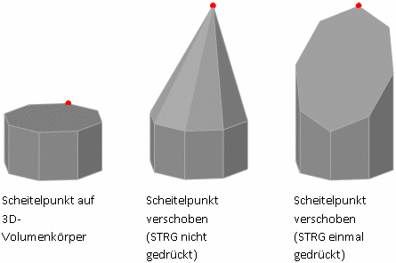 Wenn Sie einen oder mehrere Scheitelpunkte auf einen 3D-Grundkörper verschieben, drehen oder skalieren, wird das Protokoll des Grundkörpers gelöscht. Der Volumenkörper ist kein echter Grundkörper mehr und kann daher nicht mithilfe von Griffen und der Palette Eigenschaften bearbeitet werden.
