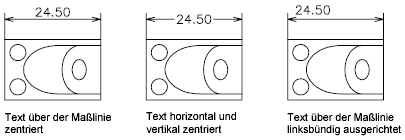 Viele Einstellungen bedingen sich wechselseitig. Die Beispielbilder im Bemaßungsstil-Manager werden dynamisch aktualisiert und illustrieren, wie der Text nach der Änderung von Einstellungen angezeigt wird.