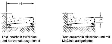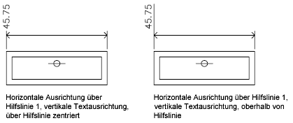 Andere Einstellungen wie die Optionen zur Textausrichtung wirken sich ebenfalls auf die vertikale Ausrichtung von Text aus. Wenn beispielsweise die Option zur horizontalen Ausrichtung ausgewählt ist, wird Text, der sich innerhalb der Hilfslinien befindet und auf der Maßlinie zentriert ist, horizontal angezeigt (siehe Abbildung links). Der Text wird auch dann horizontal ausgerichtet, wenn die Maßlinie nicht horizontal verläuft.