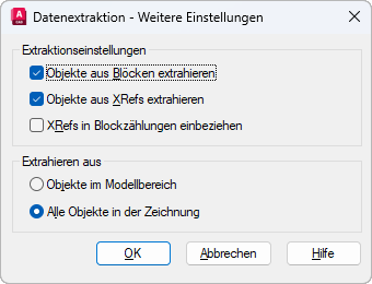 Berücksichtigt Objekte und Blöcke in extern referenzierten Dateien (XRef-Dateien).