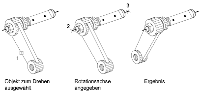 Die positive Achsenrichtung verläuft vom Startpunkt zum Endpunkt, und die Drehung richtet sich nach der Rechte-Hand-Regel.