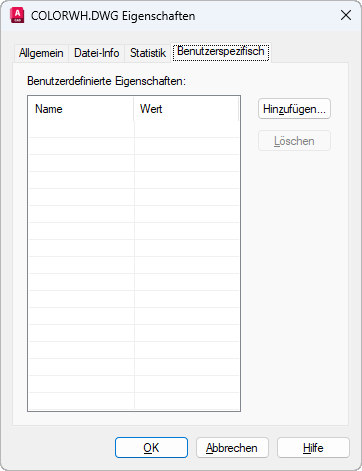 Weist einer Zeichnung benutzerspezifische Eigenschaften zu.