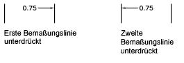 - Die Maßlinie insgesamt unterdrücken oder, wenn die Linie durch Text unterbrochen ist, eine oder beide Hälften der Linie unterdrücken