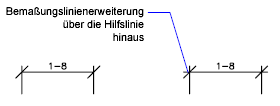 - Die Entfernung steuern, um die die Maßlinie über die Hilfslinie hinaus erweitert wird, um architektonische Pfeilspitzen (schräger Strich) zu erzielen