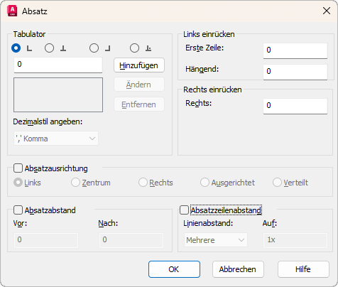 Legt die Einrückung von Absätzen und die erste Absatzzeile fest.