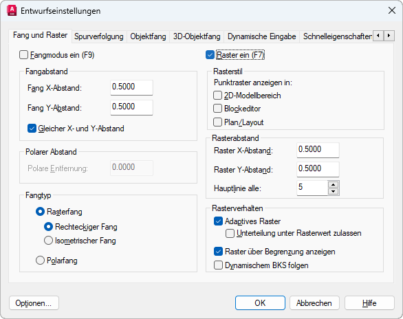 2. Ändern Sie im Dialogfeld Entwurfseinstellungen die Einstellungen nach Bedarf.