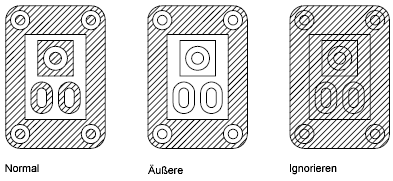 Wenn Sie den internen Auswahlpunkt angeben, bleiben die Inseln bei der normalen Inselerkennung unschraffiert, während die Inseln innerhalb der Inseln schraffiert werden.