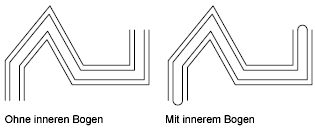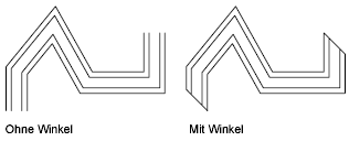 Steuert die Anzeige der Verbindungen an den Scheitelpunkten der einzelnen Multiliniensegmente. Winklige Verbindungen werden auch als Gehrung bezeichnet.