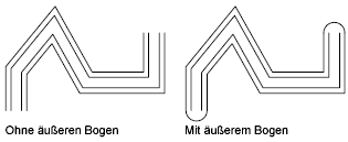 Zeigt zwischen den am weitesten außen liegenden Elementen der Multilinie einen Bogen an.
