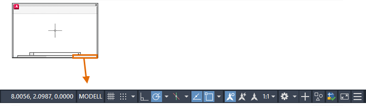 Klicken Sie mit der rechten Maustaste auf die Registerkarte Modell oder Layout, und wählen Sie Oberhalb der Statusleiste fixieren oder Auf gleicher Höhe wie Statusleiste fixieren.