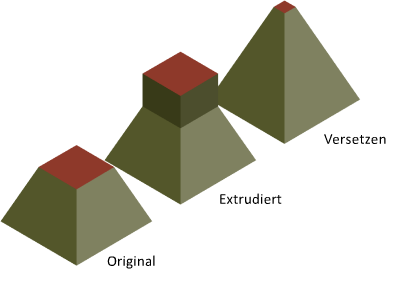Wenn Sie eine Fläche auswählen, wird die Fläche ohne Auswirkungen auf die angrenzenden Flächen extrudiert. Wenn Sie die STRG-Taste gedrückt halten und auf eine Fläche klicken, wird die Fläche versetzt, und die Änderung wirkt sich auch auf die angrenzenden Flächen aus.