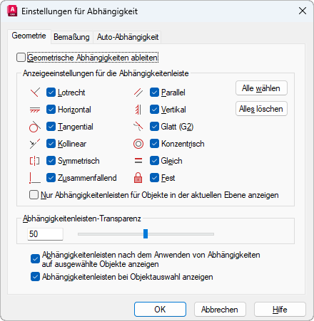 Steuert die Anzeige von geometrischen Abhängigkeiten in Abhängigkeitenleisten