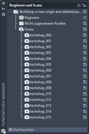 Sucht über den Namen nach einer Punktwolke, Region oder Scan-Datei.