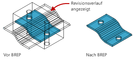 Für zusammengesetzte Objekte (Objekte, die mit Booleschen Operationen erstellt wurden) wird ein Protokoll über ihre ursprünglichen Objekte gespeichert, das angezeigt und geändert werden kann.