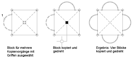 Während Sie Objekte mithilfe von Griffmodi bearbeiten, können Sie mehrere Kopien dieser Objekte erstellen.