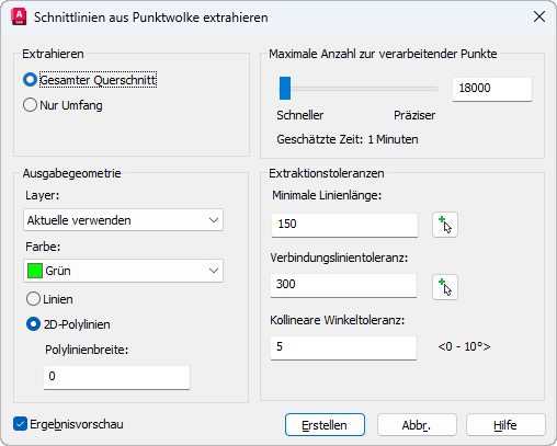 Schnittlinien aus Punktwolke extrahieren (Dialogfeld)