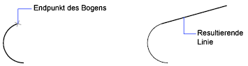 Unmittelbar nach dem Zeichnen eines Bogens können Sie eine Linie beginnen, die tangential zum Bogen an einem Endpunkt ist. Sie müssen nur die Länge der Linie angeben.