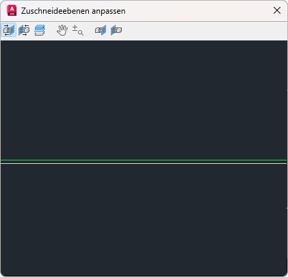 Passt lediglich die vordere Zuschneideebene an. Mit der Linie an der unteren Kante des Fensters können Sie die vordere Zuschneideebene einstellen. Wenn ein Häkchen neben der Option Vorderes Zuschneiden aktiviert angezeigt wird, können Sie den Schneidevorgang beim Verschieben der Linie nach oben oder unten in der 3D-Orbit-Ansicht beobachten.