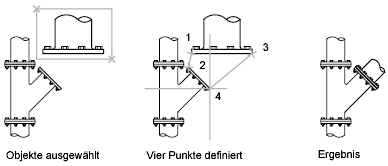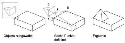 Wenn Sie drei Punktepaare auswählen, können Sie die ausgewählten Objekte in 2D und 3D verschieben und drehen und dabei an anderen Objekten ausrichten.